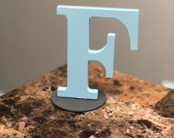 A blue letter 'F' made of foam is placed on a wooden surface with a marbled pattern. The letter is positioned upright and appears to be floating above the surface. | Custom Standing Initial | cfcf579e0ca65d502ae080af64f437d123000f831b7ca790c9914c4da421955b | 000000022720 | 0 | 0 | 30 | 3 | 0 | 0 | |