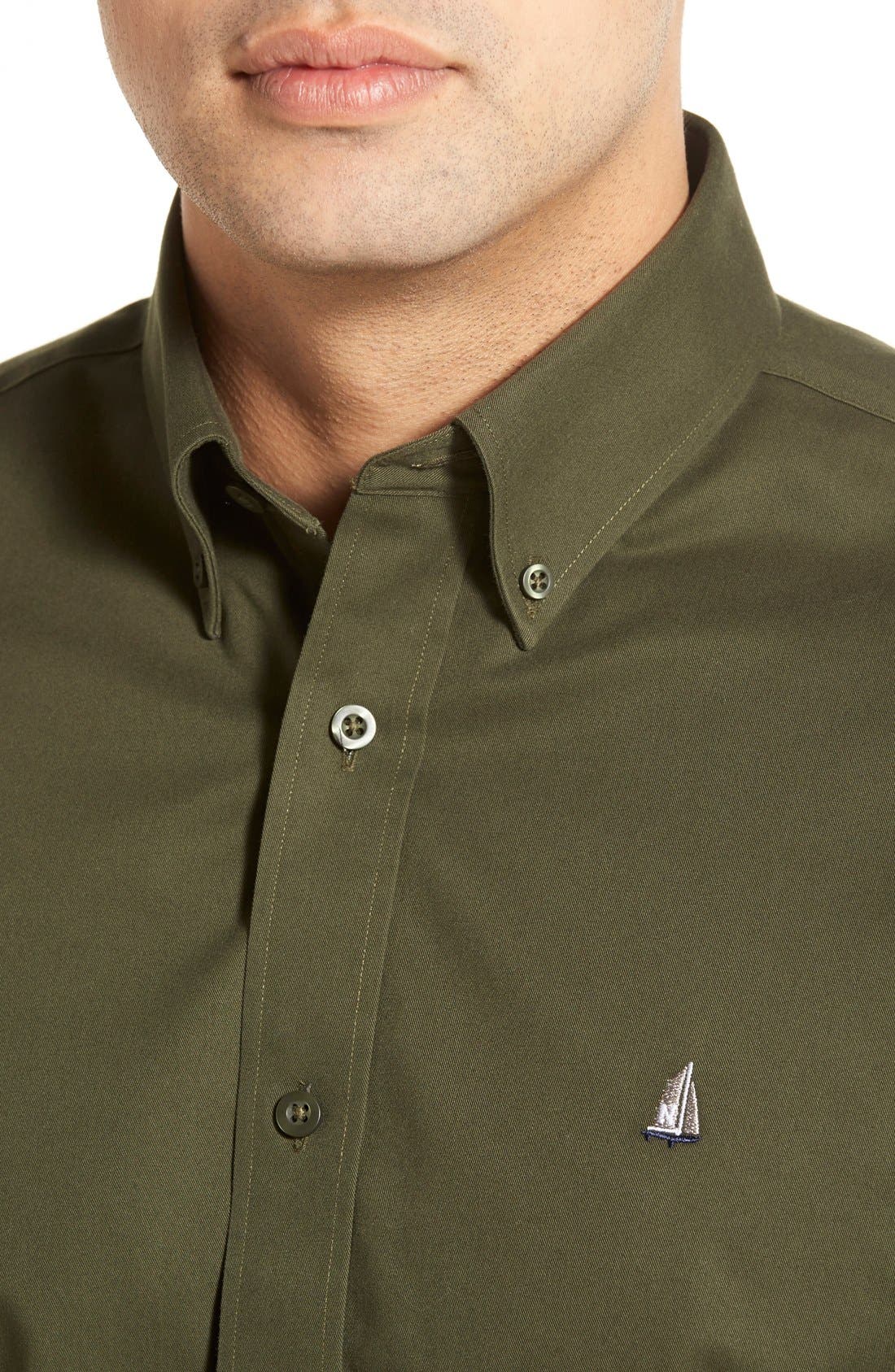A man with a neutral expression is wearing a green shirt with a small, round, blue and white emblem on the right side of the collar. | Smartcare<sup>\xe2\x84\xa2</sup> Traditional Fit Twill Boat Shirt,\n Alternate thumbnail 118, color,\n | ad5c526406f815d80d16a1726aa5d4572c78c3646d0b0d5aa725876efaa283ce | 000000022296 | 0 | 0 | 26 | 10 | 0 | 0 | |