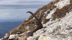 A mountain goat is standing on a rocky mountain peak with its horns pointing upwards. | Capra Ibex - PalormaFilms 16.03.2015 12-08 - stock footage | 9b03a72babfb64109eec5eb21d111e0cf1dbd1e9f6a9d5218ca87cfa24470efc | 000000023220 | 0 | 0 | 15 | 9 | 0 | 0 |