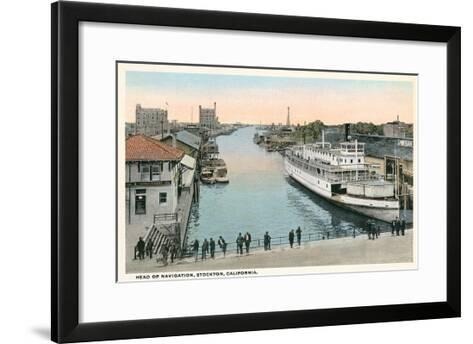 A vintage black and white photograph of a harbor scene with a large steamboat docked at a pier, surrounded by buildings and a clear sky. The photograph is framed with a black border and is titled 'San Francisco Harbor' at the bottom. | Port of Stockton, California--Framed Art Print | 96e4bd034f3cc8c6a58e378e86d8894162461fbf63f990b8222e65a7524511bf | 000000023073 | 0 | 0 | 42 | 6 | 0 | 0 | |