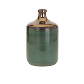 A green glass vase with a metallic bronze top and bottom sits on a white background. | Melenia Medium Green and Bronze Vase | 7b2294bc71b5bf3c460889354a5b9fb47ed33592ef518a1cae7570fb2f1ee0d1 | 000000023346 | 0 | 0 | 16 | 6 | 0 | 0 | |
