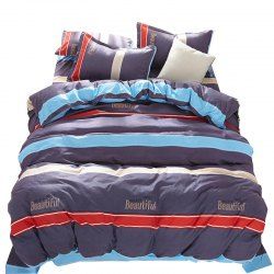A bed with a blue and white striped comforter with the word 'Beautiful' embroidered on it. The comforter has a red stripe at the bottom. There are two pillows on the bed, one with a blue and white striped pattern and the other with a white and blue pattern. | Nordic Aloe Cotton Bedding Set-Fashion - | 182a76619fb8366abaebed26d7f8de9d3c918d7304617d0474021e6a951ae108 | 000000023391 | 0 | 0 | 49 | 6 | 0 | 0 | |