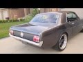 A vintage car with a brown and black color scheme is parked on a driveway. The car has a distinctive tail light design and a license plate that reads '1-1-1'. The car is positioned in front of a house with a brick facade and a garage door. The driveway is bordered by a grassy area with a few shrubs and a small tree. | 1965 Mustang Restomod Loud start up and acceleration | 556fd8635761ac8c0e3a276677b361dbc22794632b8dbeab8cb5c80b85e9e69a | 000000023339 | 0 | 0 | 63 | 8 | 0 | 0 | |