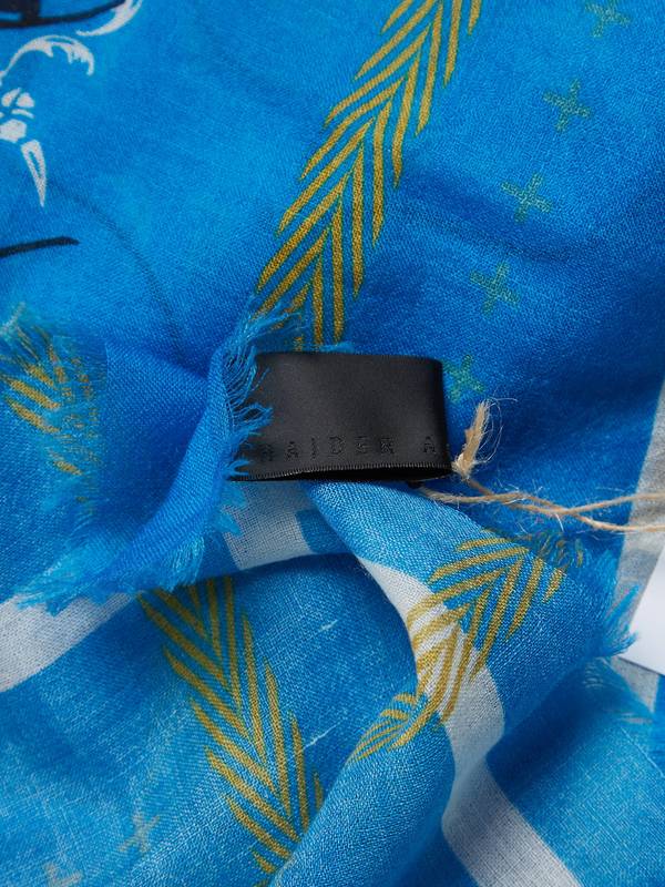 A blue and yellow patterned cloth with a black label attached to it. The cloth has a frayed edge on the left side and a loose thread hanging from the bottom right corner. | [Pre-Loved] Haider Ackermann Flower Printed Scarf | ce1db359d205bf1b31f57636a1cf5980895913fed2a28d7ff2ec0a928545b39c | 000000023422 | 0 | 0 | 33 | 6 | 0 | 0 | |