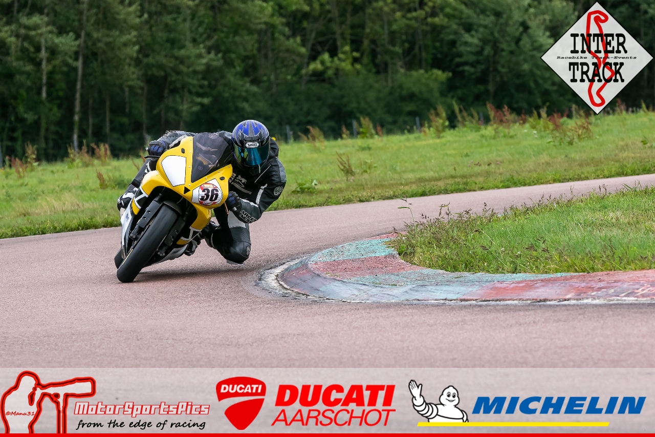 A professional motorcycle race is taking place on a track with a rider in a black and yellow suit leaning into a turn. The rider is wearing a blue helmet and is focused on the race. The track is surrounded by a forest, and there are green and red curbs on the side. The image has a promotional feel with a logo in the bottom left corner and a 'Michelin' logo on the bottom right. | 18-08-19 Inter-Track at Ecuyers Sunday open pitlane #137 | 94efcdf44d167c5d59b283377344a7c6b10e1d186b4d001cc6f514c39f5af738 | 000000023253 | 0 | 0 | 75 | 8 | 0 | 0 | |