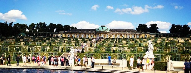 A group of people are gathered in front of a large building with a dome on top, surrounded by a lush garden with neatly trimmed hedges. The sky is clear with a few clouds, and the sun appears to be shining brightly. | Park Sanssouci is one of BK to Berlin. | 0a75260c958032c238f8347317f7bf5561712664bb4cec12c4e1836c4cf2a4af | 000000023980 | 0 | 0 | 42 | 8 | 0 | 0 | |