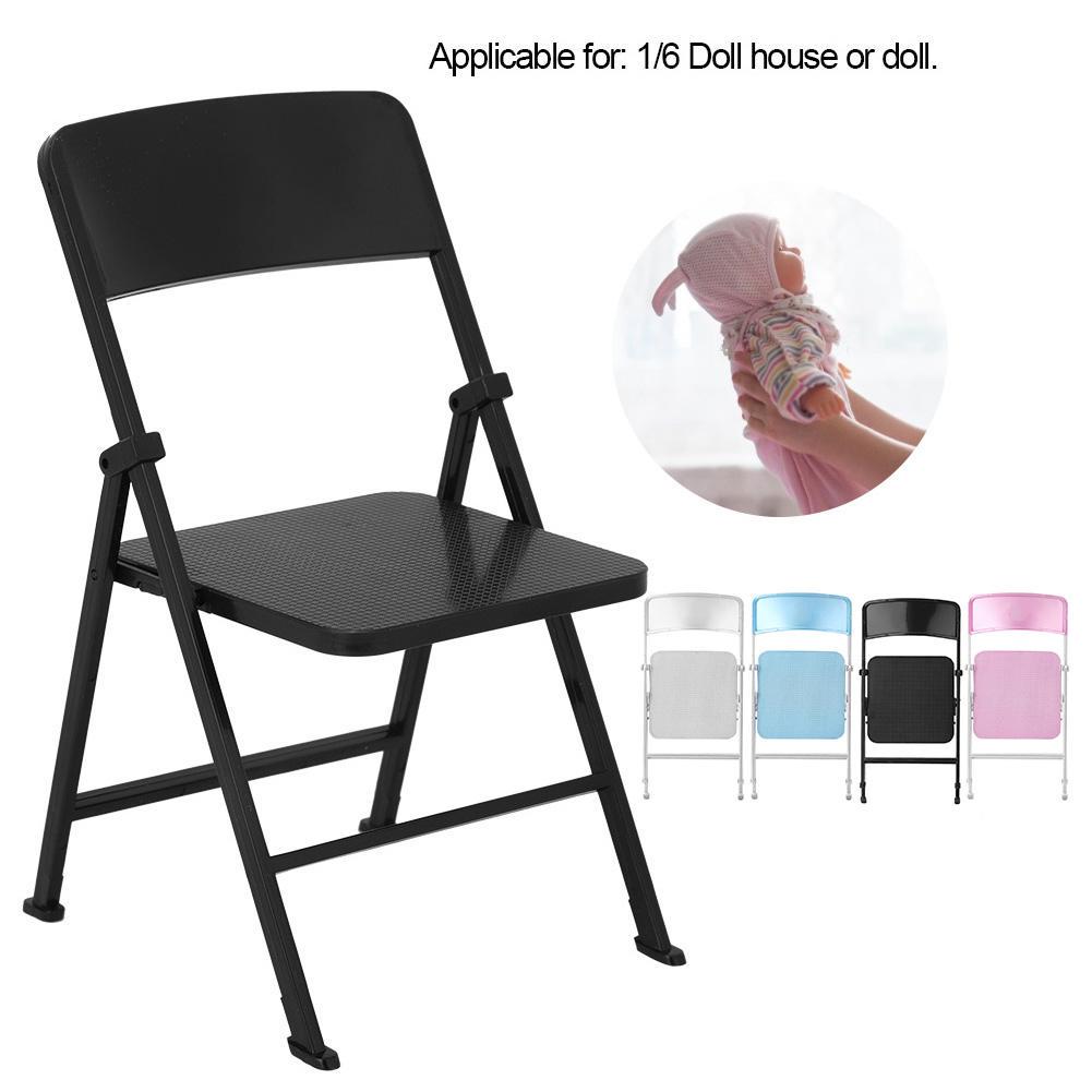 A black folding chair with a black seat and backrest is displayed in the foreground. In the background, there is a circular image of a person holding a baby doll. Below the chair, there is a text that reads 'APPLICABLE FOR 16 DOLL HOUSE OR DOLL.' | Warmtree 1//6 Scale Black Foldable Chair for 12 Action Figure Accessories Dollhouse Decoration Miniature Furniture Toys | edb94df32e86c1f8bf23f3b5a5192e8cc7b9c066b01e4ea502a17b5914b7a6d0 | 000000024524 | 0 | 0 | 46 | 16 | 0 | 0 | |