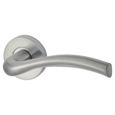 A sleek, modern silver door handle with a smooth, curved design and a simple, rectangular knob. | Jigtech Solar Lever Door Handles on Rose - Satin Chrome) | 59e46aed97a3d3ea752f09dd003f7aca636e4c9b08366bee19c1cc6aea8b9ffe | 000000024477 | 0 | 0 | 16 | 10 | 0 | 0 | |