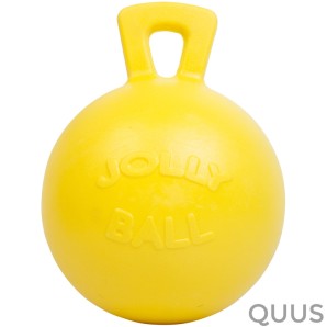 A yellow rubber ball with the word 'JOLLY' written in black capital letters on its surface. The ball has a textured surface and a yellow handle attached to its top. | 10 Inch. Jolly Ball Met Banaan Geur | ac38d509a4a637523b1dc586f31525a8c91e798d3866d5953f9c52bf12be0d79 | 000000024480 | 0 | 0 | 30 | 7 | 0 | 0 | |