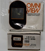 A product packaging for a camera viewfinder, featuring a black and orange design with the brand name 'OMNI VIEW' prominently displayed. The packaging includes a clear plastic window that shows the viewfinder's design, and it has a barcode and part number on the bottom. The packaging is placed on a white background. | Gentex Optical Omniview\xc2\xae Welding Filter Plate - Shade 6 - 5.25 X 4.50 | 808cb1bcf931117187d70c28ffcc1e7cbcde7ec81b0470a6a5873f3b0218a06f | 000000025200 | 0 | 0 | 52 | 13 | 0 | 0 | |
