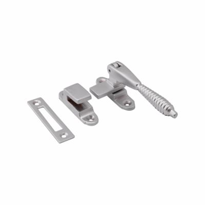 A set of silver metal hinges and screws are displayed against a white background. The hinges are of various sizes and are arranged in a way that shows their different parts, such as the hinge pin and the hinge body. The screws are also of different sizes and are placed next to the hinges. | Hampstead Reeded Hook & Plate Window Fastener - Soft Satin Chrome | c6bebffafa3fa302b6e04238d033c176b1622faf14e028f98bdbe006770f3ddc | 000000025163 | 0 | 0 | 54 | 11 | 0 | 0 | |