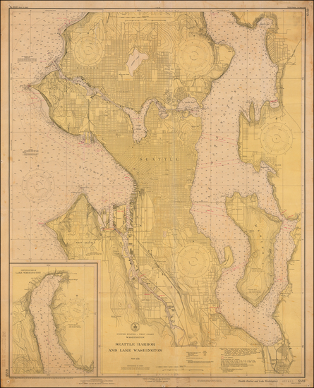 A detailed map of the Puget Sound region, featuring a variety of geographical features such as islands, bays, and coastlines. The map is overlaid with a grid pattern and includes text labels for place names and navigational information. The map is in a sepia tone, giving it an aged appearance. | 56-Washington Map By U.S. Coast & Geodetic Survey | dfee311fd2bc0ddbf6fa50ed1b214b0ea70c50670d8fc7ebd7c43d4148e8e7c6 | 000000025186 | 0 | 0 | 50 | 8 | 0 | 0 | |