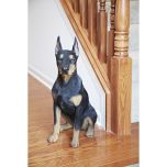 A black German Shepherd dog with a shiny coat and attentive eyes is sitting on a wooden staircase. The dog is positioned on the left side of the staircase, with its front paws slightly apart and its back paws together. The staircase has a white wall on the left and a wooden banister on the right. The floor is made of w... | Doberman Dog Statue | 4475a7f69d2dc56bd8133dc23f56b2a7ea40964c98bdac7fc12ed7cab5592384 | 000000026816 | 0 | 0 | 71 | 3 | 0 | 0 | |