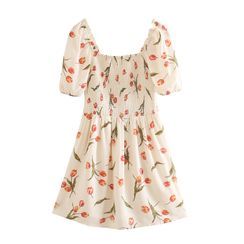 A white dress with a floral pattern featuring red flowers and green leaves is displayed against a white background. | Indesi - Short-Sleeve Floral Print Mini A-Line Dress | c62859427078111786a300cecab9351d4a036abdb2c2f06eabc16832315a0d92 | 000000026877 | 0 | 0 | 19 | 8 | 0 | 0 | |