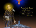 The second image shows a figure with a glowing halo, holding a dove in one hand and a book in the other. The figure is standing in front of a church with a steeple, and there is a quote at the bottom of the image. The background is dark with a gradient from dark brown at the bottom to a lighter brown at the top. | Saint Francis of Assisi | 9524b84534a19ef738512b34587c3ca746df6f9daf83153c463a17df9bd1e5ff | 000000027757 | 0 | 0 | 65 | 4 | 0 | 0 | |