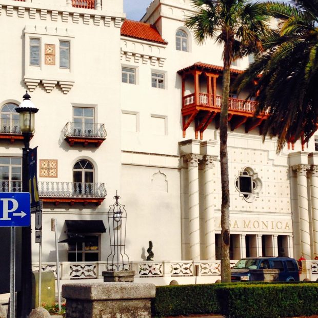 A white building with a red roof and a balcony is visible. There is a palm tree to the right of the building. In front of the building, there is a blue sign with the letter 'P' on it. A black car is parked in front of the building, and there is a street lamp to the left of the sign. | Casa Monica Hotel | 8069f172289e0c83f1b3b8aaa7596b501f5aa66203cb4b634e771b4a44dad225 | 000000027752 | 0 | 0 | 61 | 3 | 0 | 0 | |