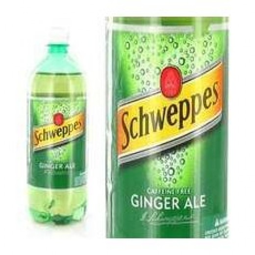 A bottle of ginger ale with a green label and a red logo is displayed against a white background. The bottle is filled with a clear liquid, and there are bubbles visible inside the bottle. The label reads 'Schweppes Ginger Ale' and 'Caffeine Free'. The bottle is positioned to the left of the image, and the label is fac... | Ginger Ale as herbal remedy | f2ac26e93380a33ae21294b6b99216142c513070533f3074e8b567975a593051 | 000000027568 | 0 | 0 | 61 | 5 | 0 | 0 | |