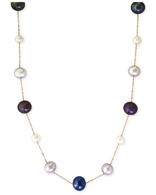 A close-up image of a necklace with a mix of white and blue pearls, and a blue gemstone in the center. The pearls are of various sizes, and the necklace is strung on a gold chain. The background is a plain, light color. | Effy Collection | Multicolor Multi-color Cultured Freshwater Pearl Station Necklace In 14k Gold (6mm) | Lyst | d100bfa263f01bcd42eaab8d210fa8450517ebc2386dce98f6899ae53c272bc1 | 000000028334 | 0 | 0 | 43 | 16 | 0 | 0 | |
