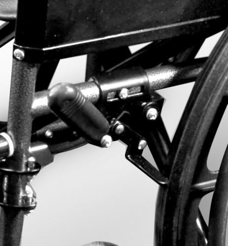 A close-up view of a wheelchair's footrest, showing the metal frame, black rubber wheels, and the black seat cushion. | Standard Self Propel Wheelchair | 0d99c2dfab3550263984d106345aafedd2088a309db694e71ffefe3ebabaf909 | 000000028259 | 0 | 0 | 19 | 4 | 0 | 0 | |