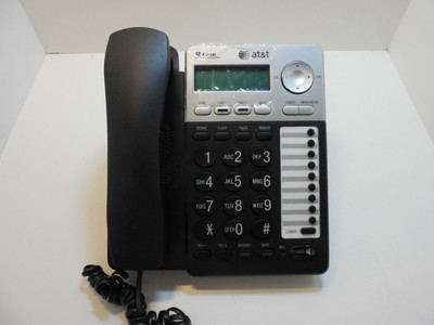 A black and silver corded telephone with a small screen displaying 'AT&T' and 'Call Waiting' is placed on a white background. The phone has a number pad with buttons labeled '1' to '9' and '0', as well as additional buttons for 'Call', 'End', and 'Hold'. The phone also has a 'Speaker' button and a 'Volume' control. | AT&T ML17929 2 Line Corded Phone w/Stand - NO A/C ADAPTER | 3694857cb6f8e30d16335e199f34a4705404849992926611e5b9969837fac98d | 000000028430 | 0 | 0 | 56 | 11 | 0 | 0 | |