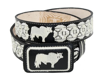 A black leather belt with a white and black patterned buckle featuring a bull design. | Unisex Genuine Cowhide leather Belt Cinto Borado Style 13132 | eee4700a3d609df041379c62925056e0e3930d7d074fbf5f993bc3faadf353c6 | 000000028364 | 0 | 0 | 15 | 9 | 0 | 0 | |