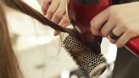 A person is using a red hair dryer to dry a woman's hair. The hair dryer is held close to the woman's hair, and the person's hands are visible, one holding the hair dryer and the other holding the woman's hair. The woman's hair is long and is being blown dry by the hot air from the hair dryer. | Haircutter using dryer for drying female hair and hairbrush for styling after hairdressing in beauty studio. Close up hairstylist making hairstyling long hair in hairdressing salon | c5e9c0261538e1291c377085ec25c625e9e006c48aa4287de3d82484825ff00e | 000000029110 | 0 | 0 | 59 | 26 | 0 | 0 | |