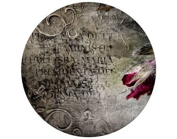 A close-up of a vintage photograph with a textured background featuring a rose and a butterfly. The photograph has a sepia tone and is framed with ornate, aged-looking borders. The text on the photograph is in a foreign language, possibly Italian, and appears to be a dedication or inscription. | Product picture Canvas Art Circle Mystic Flower | 0db8d3673974868d37f875d290e888eed5f173a646986334cbd09fe94530c189 | 000000029074 | 0 | 0 | 49 | 7 | 0 | 0 | |