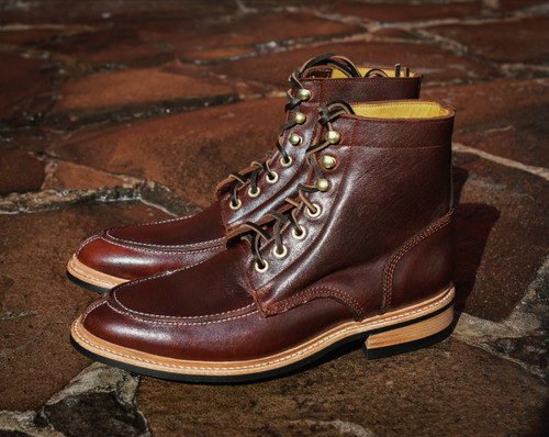 A pair of brown leather boots with laces is placed on a stone floor. The boots have a smooth, polished finish and are positioned with the toes pointing towards the bottom of the image. The laces are tied in a bow, and the boots cast a shadow on the floor. | HORWEEN BOUNDARY FOOTWEAR | ed454810edd83a911279fc643916e21c61a7223664e1fdc33e5d6936a3958d91 | 000000029027 | 0 | 0 | 50 | 3 | 0 | 0 | |