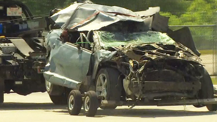 A heavily damaged car is being towed by a flatbed truck. The car's front is crushed and the windshield is shattered, with debris scattered around. The car's roof is partially torn off, and the rear is also visibly damaged. The truck is positioned on the left side of the car, and the scene appears to be taking place on ... | Car that fell off I-10 bridge, killing little girl | df10dd20b554a2ba244de4887e3959dba29e9d248f91ec64eed24d2ea2ceea7d | 000000029088 | 0 | 0 | 67 | 9 | 0 | 0 | |