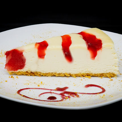 A slice of cheesecake with a strawberry topping is placed on a white plate. The cheesecake has a golden-brown crust and is garnished with a drizzle of red sauce in the shape of a heart. The plate is on a dark surface, and there are crumbs and sauce splatters around the cheesecake. | Strawberry Swirl Cheesecake | 9b9ff2660860780dd53f85d01c8ca063968ce7d1c3676e47b05476fdbd66c048 | 000000029142 | 0 | 0 | 52 | 3 | 0 | 0 | |