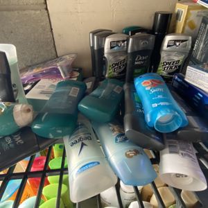A variety of personal care products are displayed on a shelf. There are multiple bottles of shampoo, conditioner, and body wash, as well as a few toothbrushes. The products are arranged in a somewhat disorganized manner, with some items overlapping or placed on top of others. The shelf is made of metal and has a mesh b... | toothpaste, deodorants And Shampoos. for Sale in San Bernardino, CA | 78a595f8c7141bcfd7d8a1e54356629f3ddd288cf22160e74a3b638ad9ab1b33 | 000000029547 | 0 | 0 | 75 | 10 | 0 | 0 | |