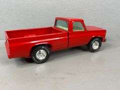 A red toy pickup truck with a closed bed and a small cab is placed on a white surface. The truck has a shiny finish and is positioned with its front facing the viewer. The wheels are black with a silver rim, and the truck has a small window in the cab. | Chevy Pickup, Nylint | 2650385deaa4de44e2b2355b0fe58e4dd839b45681ef3618fb7cd7f46ef06a54 | 000000029651 | 0 | 0 | 52 | 3 | 0 | 0 | |