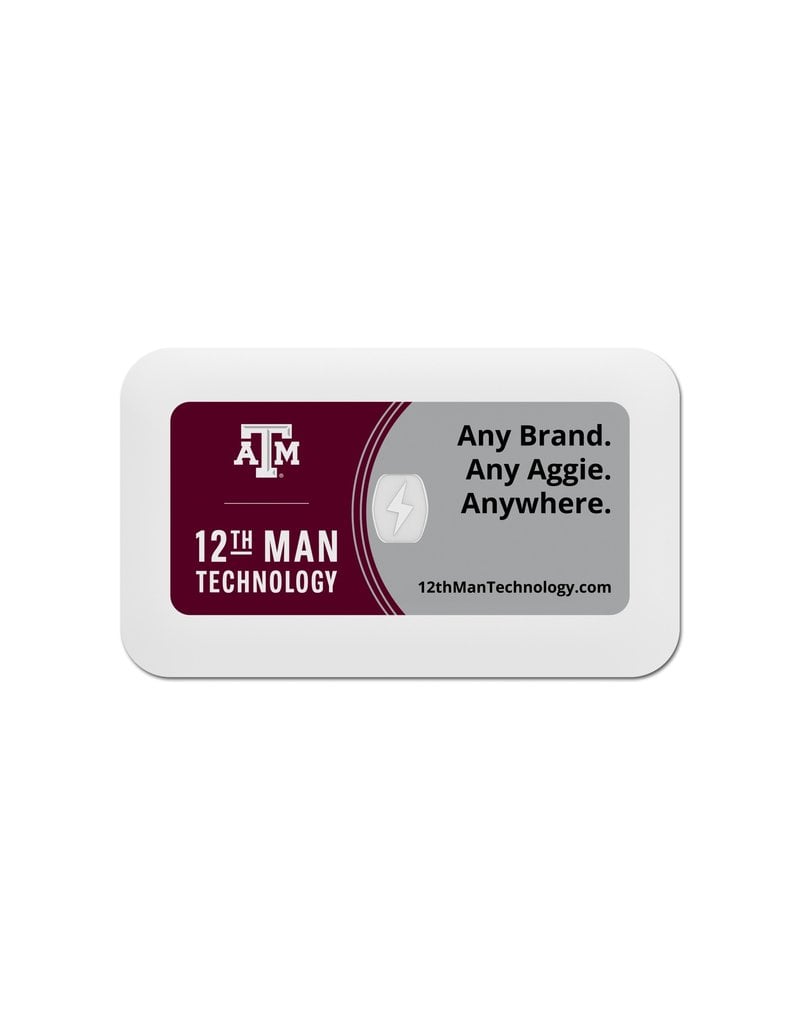 A white rectangular card with a maroon and gray design featuring the Texas A&M logo and the text '12th Man Technology' at the bottom. The card also has the text 'Any brand. Any Aggie. Anywhere.' and the website '12thman.com' at the bottom right corner. | PHONE SOAP 12TH MAN TECHNOLOGY EXCLUSIVE PHONE SANITIZER | 3bd45dcc2842427f8b5993e5b10df8a845f43ce44eaf6e3a8d96d5993c0df9af | 000000029630 | 0 | 0 | 44 | 8 | 0 | 0 | |