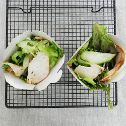 A close-up view of two identical wraps on a wire cooling rack. Each wrap contains a mix of lettuce, cucumber slices, and white fish pieces. The wraps are neatly placed side by side, and the cooling rack is set on a surface with a greyish tone. | Vietnamese chicken salad thumbnail | 55fcbf973fa412a368d74419e81bc1711557f9cf099420a96beb5ede283e8e7a | 000000029685 | 0 | 0 | 46 | 4 | 0 | 0 | |