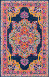 A close-up view of a colorful, ornate rug with a detailed pattern featuring a central medallion surrounded by concentric circles and geometric shapes. The rug has a rich tapestry of colors including shades of blue, orange, pink, and yellow, with intricate designs that give it a luxurious and decorative appearance. | Momeni Ibiza IBI-1 Navy Area Rug | b4382b2b34af5c10b759282fcdec28478f846323f8372306d3c375b543c1b33d | 000000029765 | 0 | 0 | 50 | 6 | 0 | 0 | |