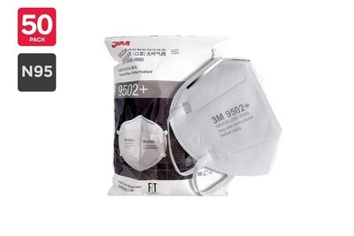 A white disposable surgical mask with a black design on the front, featuring a shield-like pattern and the text '3M 1860+'. The mask is attached to a white bag with a label that reads '50 PACK' and 'N95' in red. The bag is placed against a white background. | 3M 9502+ Particulate Respirator Face Mask - 5 P/C | a095e36da9980b515719b1b6c262dd17d75bd051671355150ebc3acec2912517 | 000000030582 | 0 | 0 | 48 | 9 | 0 | 0 | |