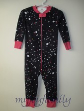 A black and pink onesie with a galaxy print is hanging on a white hanger against a white background. The onesie has a round collar with a pink ribbon and a zipper running down the front. The galaxy print features stars and planets scattered across the fabric. | HANNA ANDERSSON Baby Organic Zip Sleeper Northern Lights 70 9-12 months NWT | 46838ceb71019bd0a395db77176d5bc3fc26e91bf5a91b9db4779228bf63a594 | 000000030573 | 0 | 0 | 47 | 12 | 0 | 0 | |