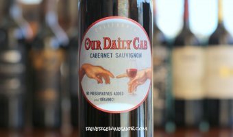 A close-up of a wine bottle with a label that reads 'Our Daily Cabernet Sauvignon'. The label features an illustration of two hands clasped together, with one hand holding a glass of wine. The label also includes the text 'Organic' and 'Non-GMO'. The bottle is surrounded by other wine bottles in the background, but the... | Our Daily Cab – Purely Good | 75bb589a83e1a351971d2d392b1b5e8b27a0b62d709c2a48e11a0e4c2d86ad65 | 000000030574 | 0 | 0 | 59 | 6 | 0 | 0 | |