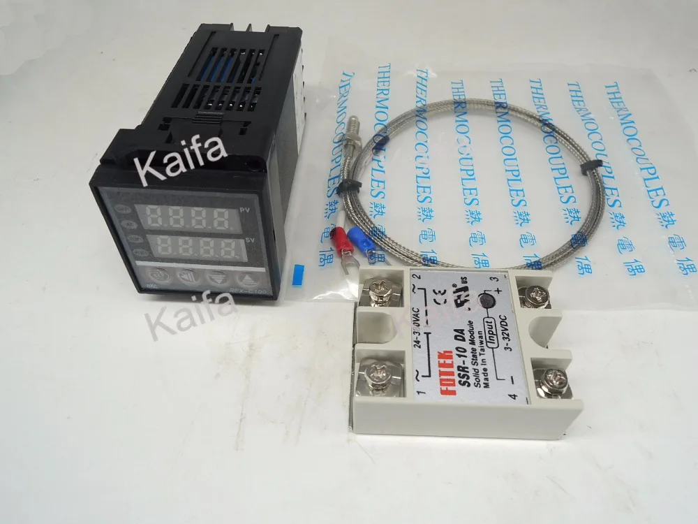 A black digital timer with the word 'KALIFA' on it is placed next to a white box with a label that reads 'THEMOCKLES'. The timer has a digital display showing numbers and a red button. The white box has a label with Chinese characters and a red button. Both items are on a white surface with a plastic bag underneath the... | ,Digital PID Temperature Controller Thermostat REX-C100 + 1M K Thermocouple Probe+SSR 10DA,100V~240V AC original thermostat dta4848r0 dta series temperature controller | 84dddca2044199370e79d048a73d79047d9f98ba52eea0a884b15d0974393268 | 000000030664 | 0 | 0 | 61 | 20 | 0 | 0 | |