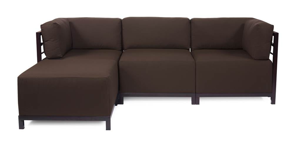 A brown leather sofa with a tufted backrest and a wooden frame is displayed against a white background. | 4-Pc Sectional in Chocolate by Howard Elliott Collection | fcbe95eb35a9e3d6e570c3e61a2ca463fad8cb9f3a205a1213b0e23decfcb5a2 | 000000030607 | 0 | 0 | 18 | 8 | 0 | 0 | |