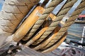 A close-up of a wooden ship's wheel with ropes wrapped around it. The ropes are coiled and secured, with some ends hanging down. The wheel is positioned against a wooden surface, and the image is in focus with a shallow depth of field, blurring the background. | Free Pulley Stock Photo - 15933470 | bba821a4957ce6c9becbc8e4fccfbf5ccc1890dbf8313a3222b8db679a8cda1b | 000000030670 | 0 | 0 | 46 | 6 | 0 | 0 | |
