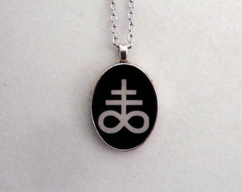 A silver pendant with a black and white design featuring a cross and a looped symbol hangs against a white background. | Sigil Of Sulfur Leviathan Cross Necklace Black And White | f9d7f70f4ad6e46189edd5481b8d8303cadbcc83736e944b764bfa47ca7a6a58 | 000000030660 | 0 | 0 | 21 | 9 | 0 | 0 | |
