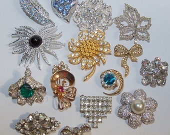 A collection of various brooches is displayed on a white background. The brooches are made of different materials, including silver, gold, and gemstones. They feature intricate designs, such as flowers, bows, and geometric patterns. The brooches are arranged in a way that showcases their details and craftsmanship. | lot of 15 costume jewelry pins/brooches all in good condition, vintage also will have other lots | edff6f3b68847bd3491914473c873c55833b57e276b4498e997b93cba0f9231a | 000000030613 | 0 | 0 | 47 | 16 | 0 | 0 | |