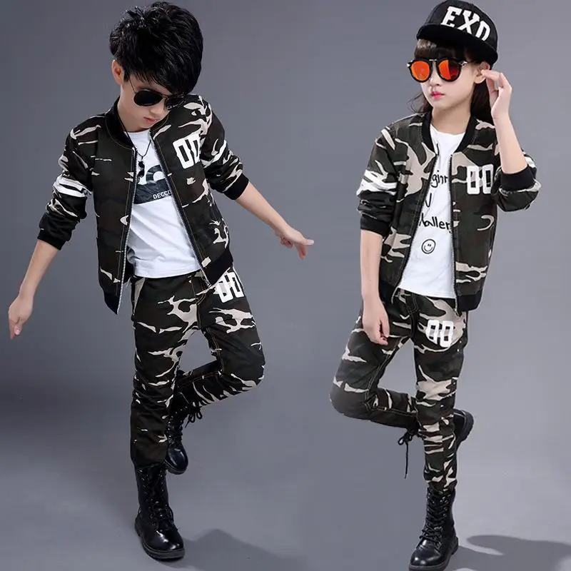 A young boy and girl are posing for a photo. The boy is wearing a green and white camouflage jacket with the number '08' on the back, a white t-shirt, and black pants. He has black boots and is wearing sunglasses. The girl is wearing a green and white camouflage jacket with the word 'EXO' on the back, a white t-shirt, ... | Fashion Children girls clothing sets autumn boys spring camouflage clothes sport suits 2Pcs school kids tracksuit 4~14T JM17 \xd0\xb1\xd0\xbe\xd1\x80\xd0\xb4\xd1\x8e\xd1\x80 as creation swing line 93471 2 | 0ba4f407f5f198f30695b4ee42c0add2d07e00db045e362fd4ba6b104bcfe203 | 000000031076 | 0 | 0 | 73 | 25 | 0 | 0 | |