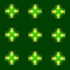 A collection of green clovers with a glowing outline is arranged in a grid pattern on a dark green background. | St. Patrick\xe2\x80\x99s Day Shamrock Background | 3b827a4973d97dec18bf5347c39104eb68a115393f93249a4b5c708c2333a54f | 000000031111 | 0 | 0 | 20 | 5 | 0 | 0 | |