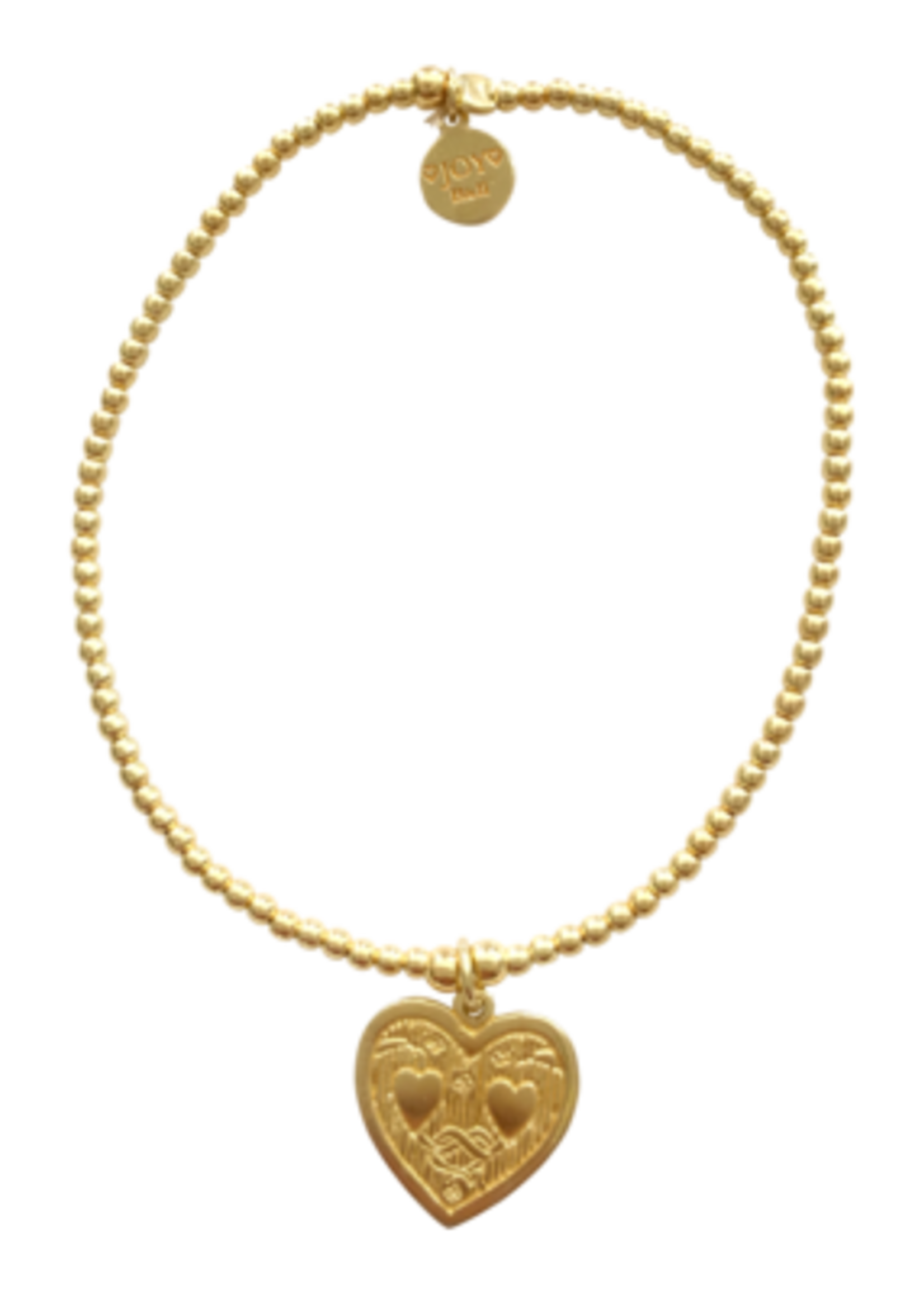 A gold heart-shaped pendant with a smaller heart inside it, attached to a gold chain with a clasp. The pendant has a detailed design on the heart, and the chain has a small heart-shaped charm with the initials 'L' and 'A' engraved on it. | Joy Bali Joy Bali Bracelet Tiny Wishes Boda Gold | a854574511992241338807ecf8a3305f624b18e632cc03a41570eeb3229e3cdf | 000000031220 | 0 | 0 | 44 | 9 | 0 | 0 | |