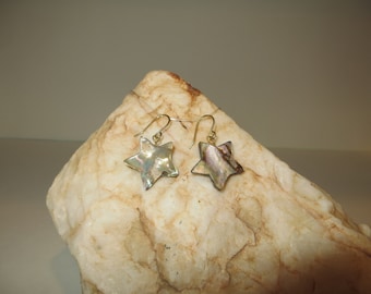 A pair of silver star-shaped earrings with a textured surface is displayed on a white marble surface. The earrings are positioned on either side of a central point, with the stars facing upwards. The marble surface has a natural veining pattern and appears to be a light beige color. | Abalone Shell Star Earrings | 7a04e3400d1029f3a2c0d22c8e518588a1b5ff73957a2f8c89c12798fb2331d1 | 000000031503 | 0 | 0 | 49 | 4 | 0 | 0 | |