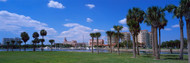 A serene park scene with a clear blue sky, a few fluffy clouds, and a row of tall palm trees. The park is lush with green grass and a calm body of water in the background. A bench is visible near the water's edge, and a city skyline can be seen in the distance. | View of St Petersburg from Palm Trees | 329445892df8e772ad9220bfc28eb141c1f4322d35f9e8bc8b6e70edd3a52b3b | 000000031550 | 0 | 0 | 54 | 7 | 0 | 0 | |