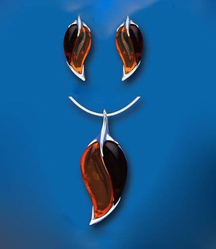 A pair of earrings with a teardrop shape, one with a clear and the other with a darkened appearance, are displayed against a blue background. | Amber Leaf Pendant and Earrings Set Solid Sterling Silver Natural Stones | 6df5abcab6cbc2a4dd4de71b044d17a2a172529a0f01700b246028b170430d7e | 000000031652 | 0 | 0 | 25 | 11 | 0 | 0 | |
