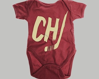 A red onesie with a stylized 'CH' design on the front, featuring a hockey stick and a puck, with the letters 'CH' in a bold, golden font. | Chicago Blackhawks Baby Onesie Infant Shoulder Creeper Daa Baby | 3c67e82df70022e809d227ebbf7c8b27463f71b1c6537d837d99399553bf34bf | 000000031564 | 0 | 0 | 27 | 9 | 0 | 0 | |